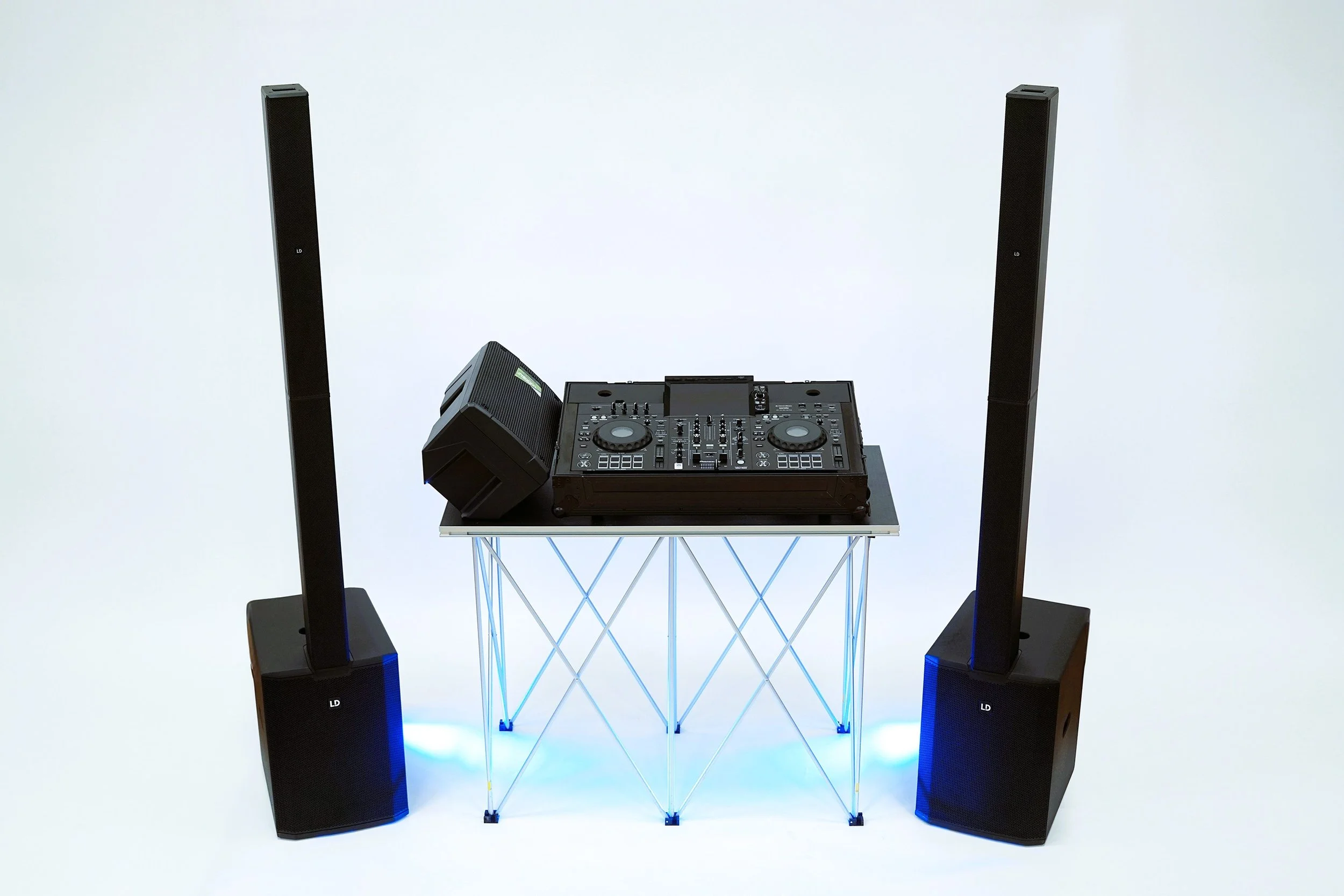 Noleggio casse, Noleggio luci, Noleggio consolle, Noleggio microfoni, Tecnico durante l’evento*, DJ, artisti e performer*